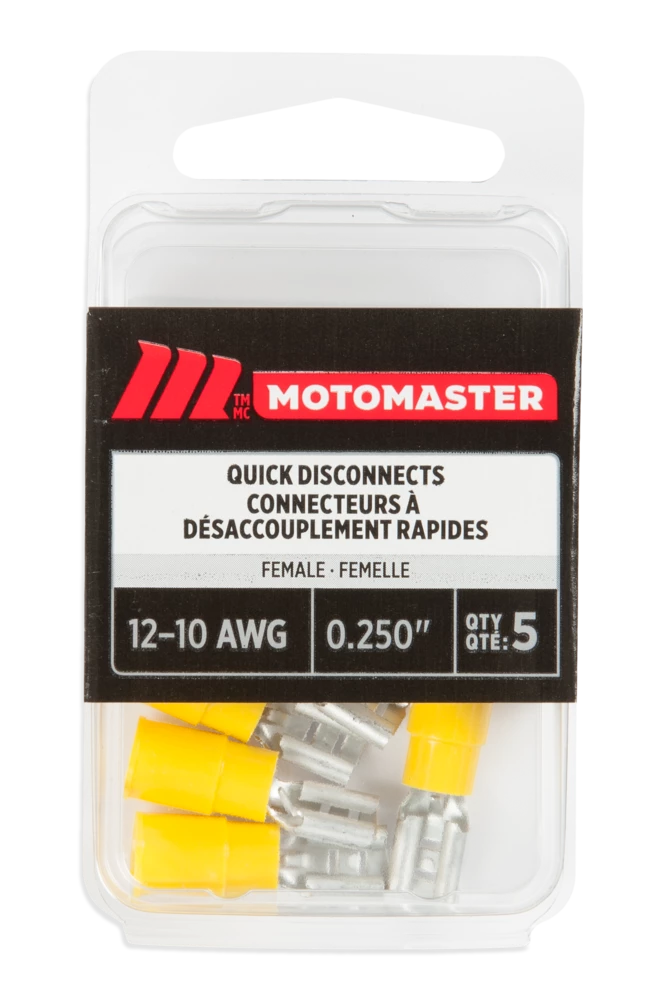 - Certified 12-10 AWG Automotive Female Quick Disconnect is used for electrical wire termination