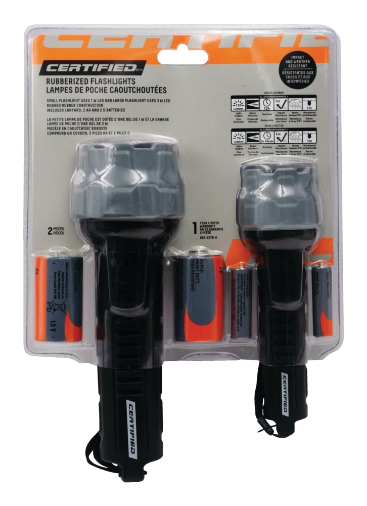 - Certified Rubberized Flashlight features a high lumen output and rugged construction