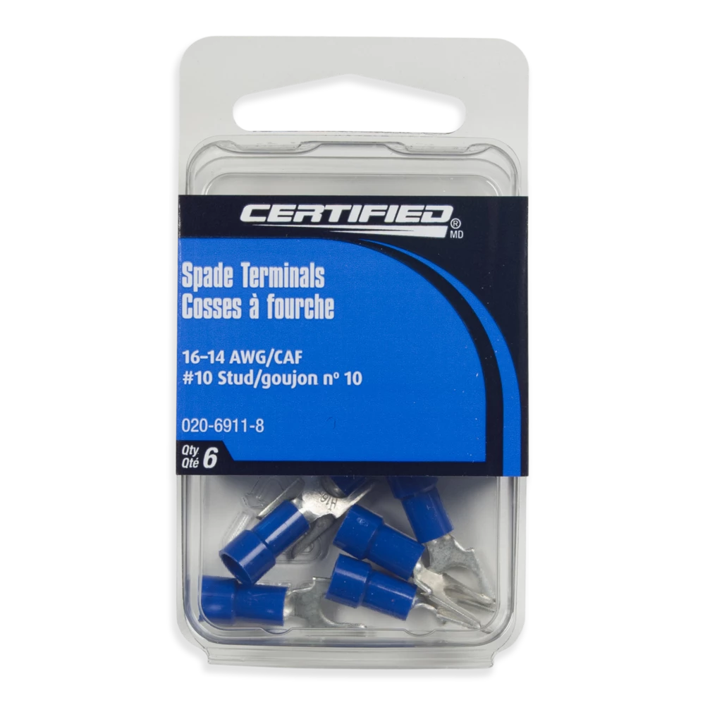 - Certified 16-14 AWG Automotive Spade Terminal is used for electrical wire termination
