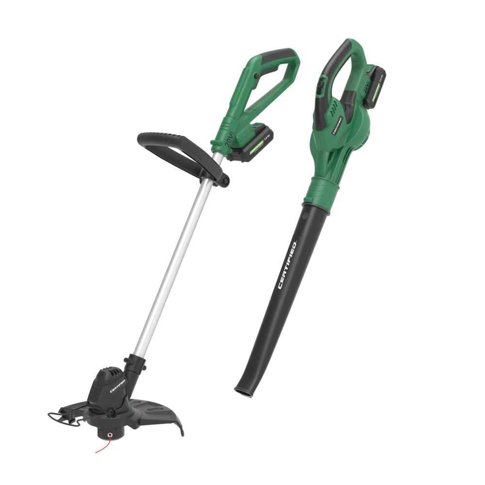 - Certified 20V Grass Trimmer/ Sweeper Combo utilizes a powerful 20V Max lithium-ion battery to power both a 20V Grass Trimmer and 20V Blower/Sweeper to make yard work easy around the home