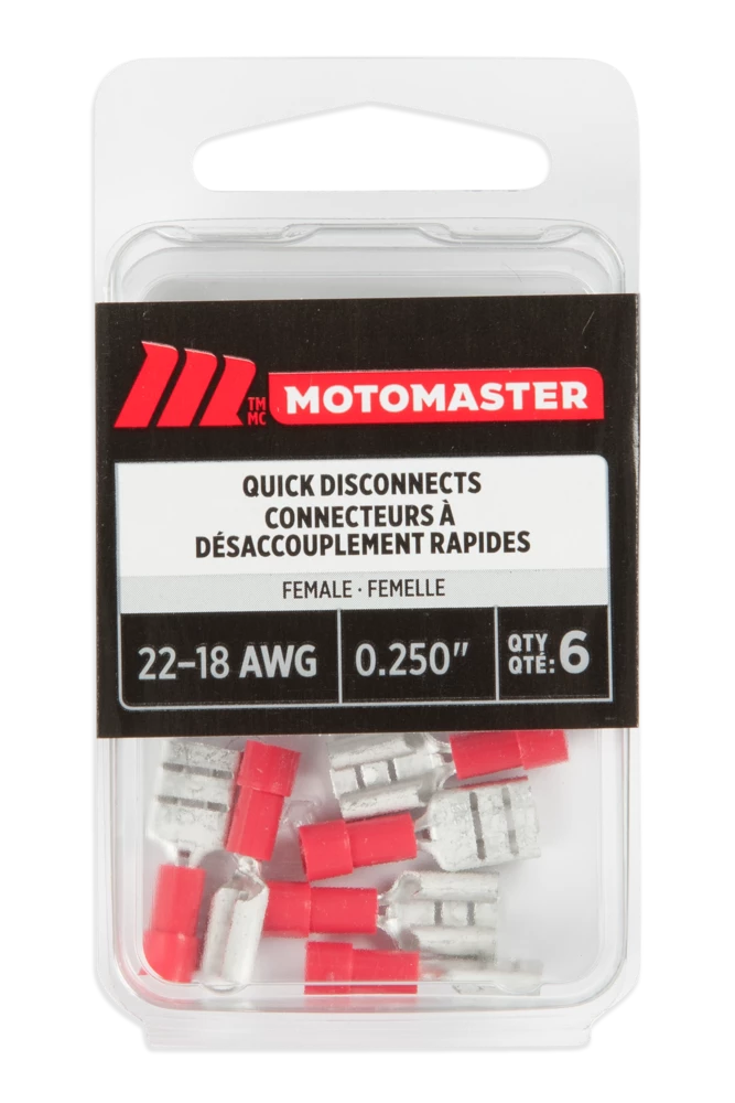 - Certified 22-18 AWG Automotive Female Quick Disconnect is used for electrical wire termination