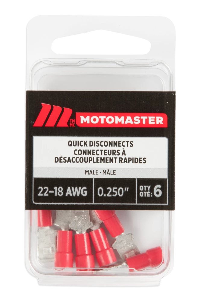 - Certified 22-18 AWG Automotive Male Quick Disconnect is used for electrical wire termination