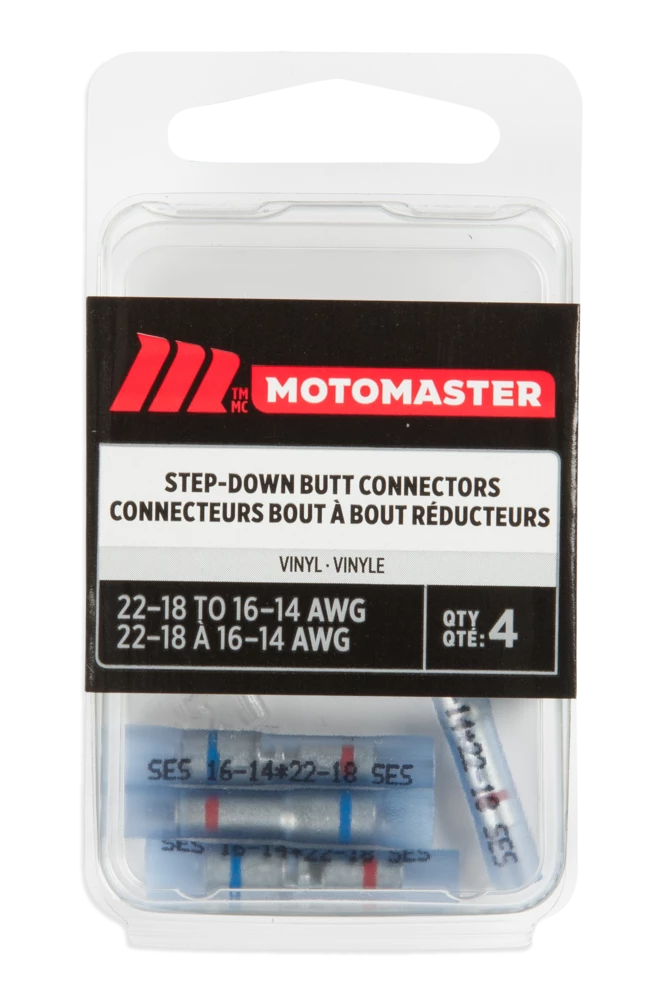- Certified 22-18 to 16-14 AWG Vinyl Step Down Butt Connector is used for joining incongruent wire sizes