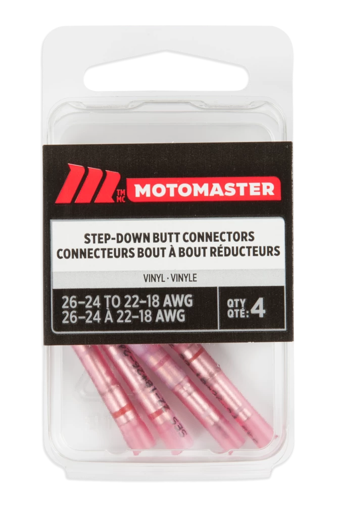 - Certified 26-24 to 22-18 AWG Vinyl Step Down Butt Connector is used for joining incongruent wire sizes