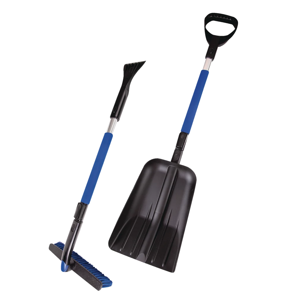 - Certified 5-in-1 Snowbrush and Shovel Kit is great for storing in the trunk for snow emergencies
