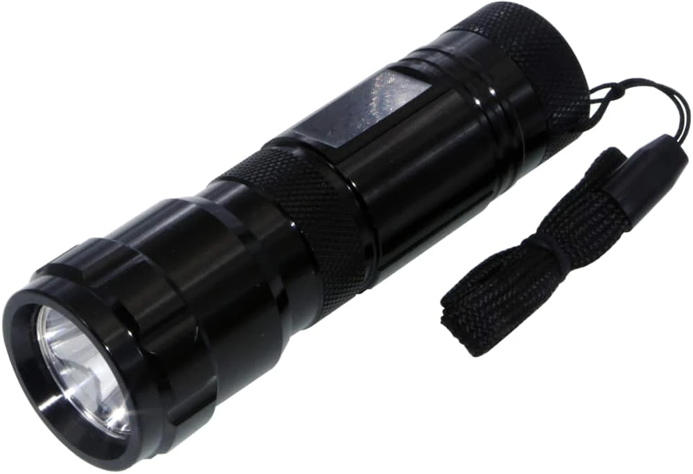 - Certified Compact Flashlight features 3 light settings: low, high and strobe