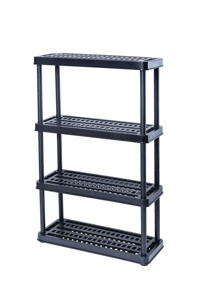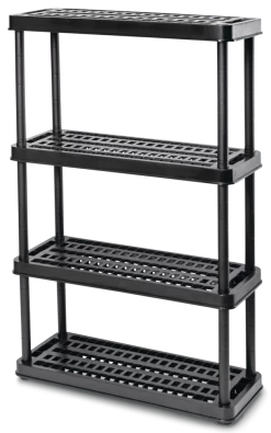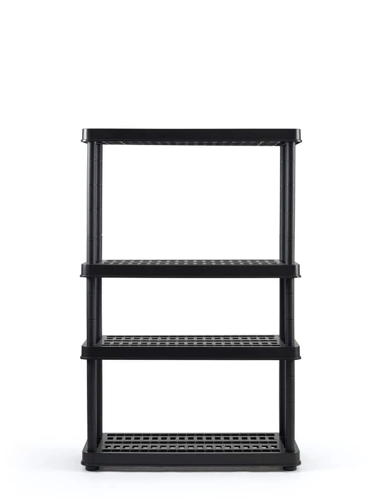 - Certified Adjustable 4-Shelf Resin Rack is ideal for your garage, basement or laundry room