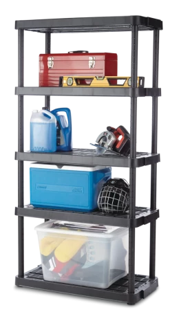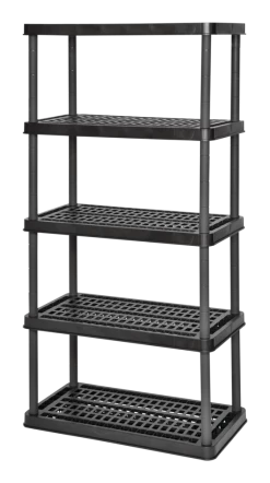 - Certified Adjustable 5-Shelf Resin Rack is ideal for your garage, basement or laundry room