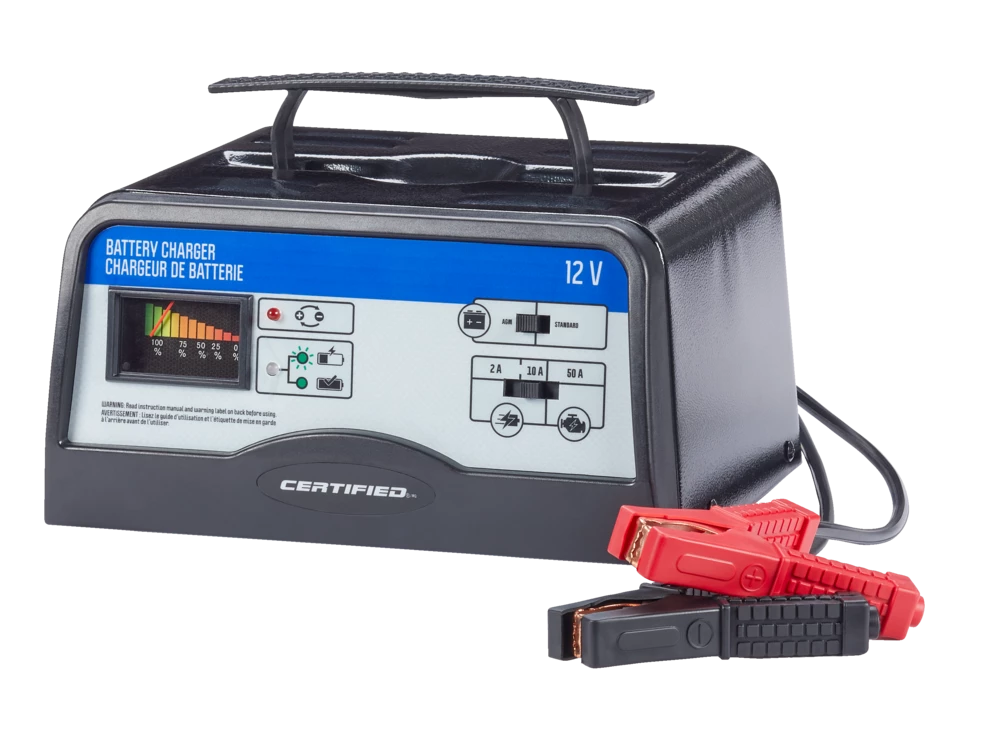 - Certified 10/2A Battery Charger with 50A Engine Start features a reliable traditional design