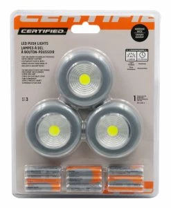 - Certfied LED Push Lights with COB technology that provides bright lighting, with no bulbs to burn out or change