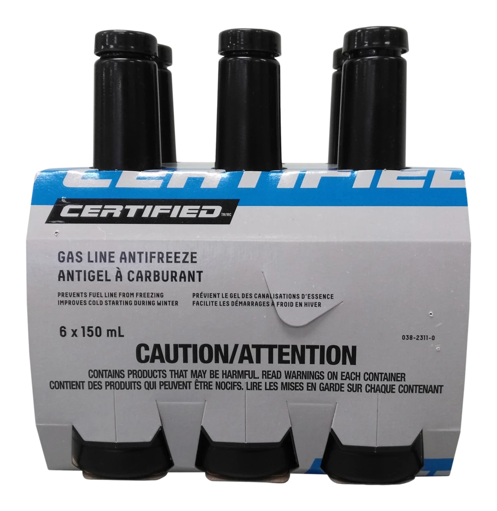 - Certified Gas Line Anti-freeze prevents fuel lines from freezing