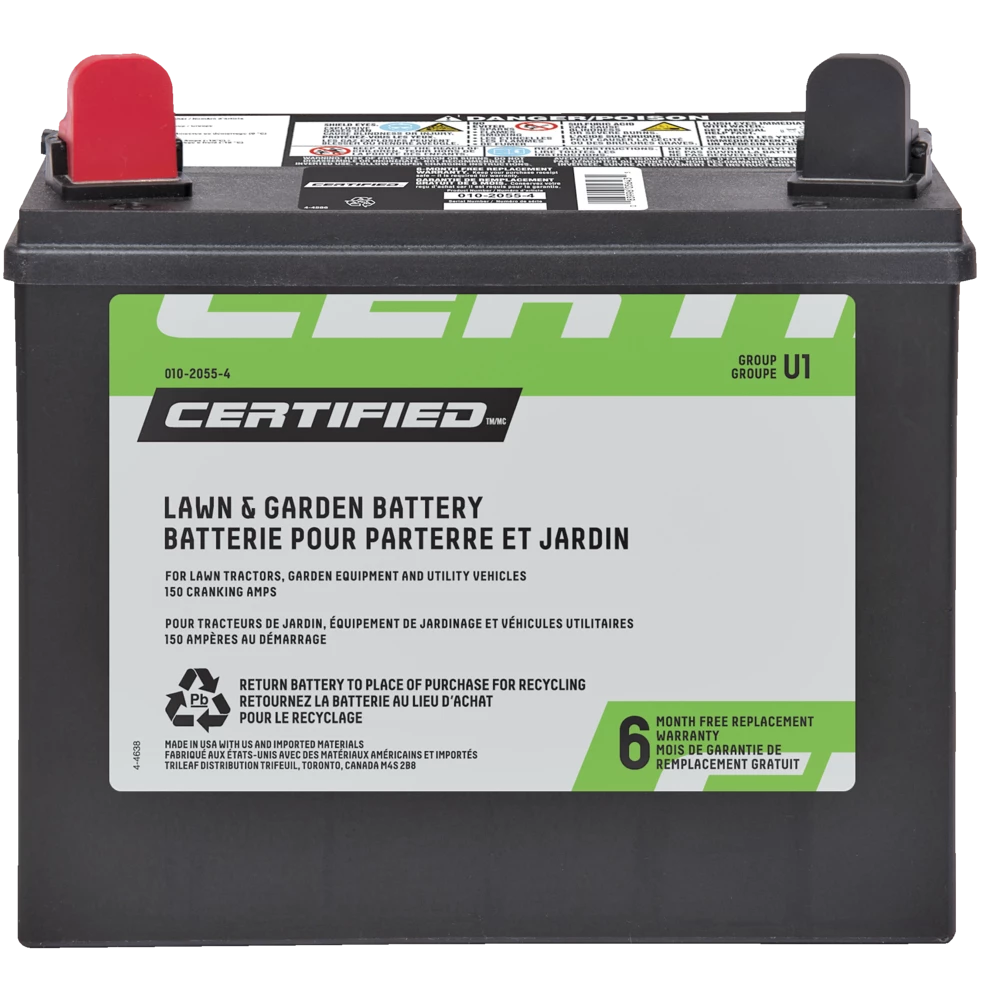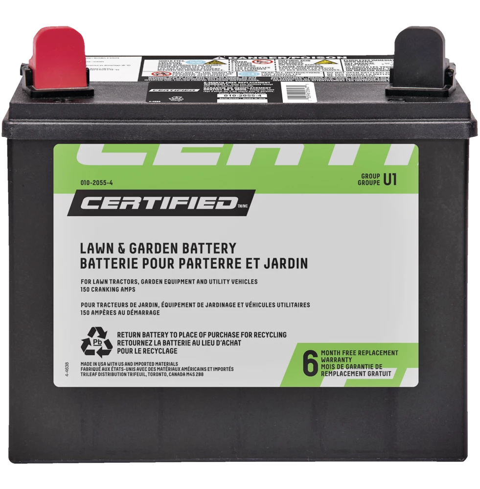- Certified Group Size U1 Utility Battery is a reliable starting battery for lawn and garden equipment