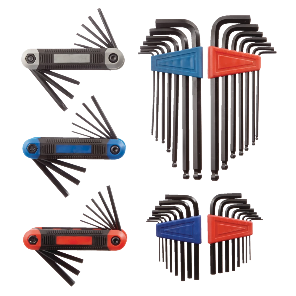 - 8-piece folding metric hex key set: 1.5, 2, 2.5, 3, 4, 5, 5.5, 6 mm