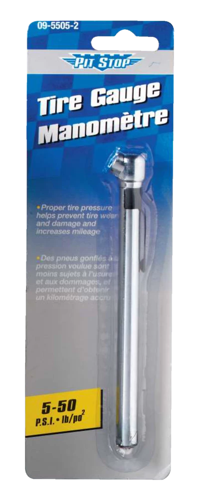 - Certified Low Pressure Tire Gauge reads pressures from 5-50 PSI
