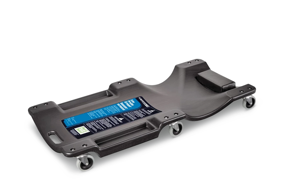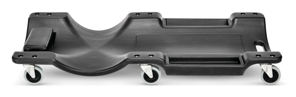 - Certified Low Profile Creeper features a drop-shoulder design and padded headrest for comfort