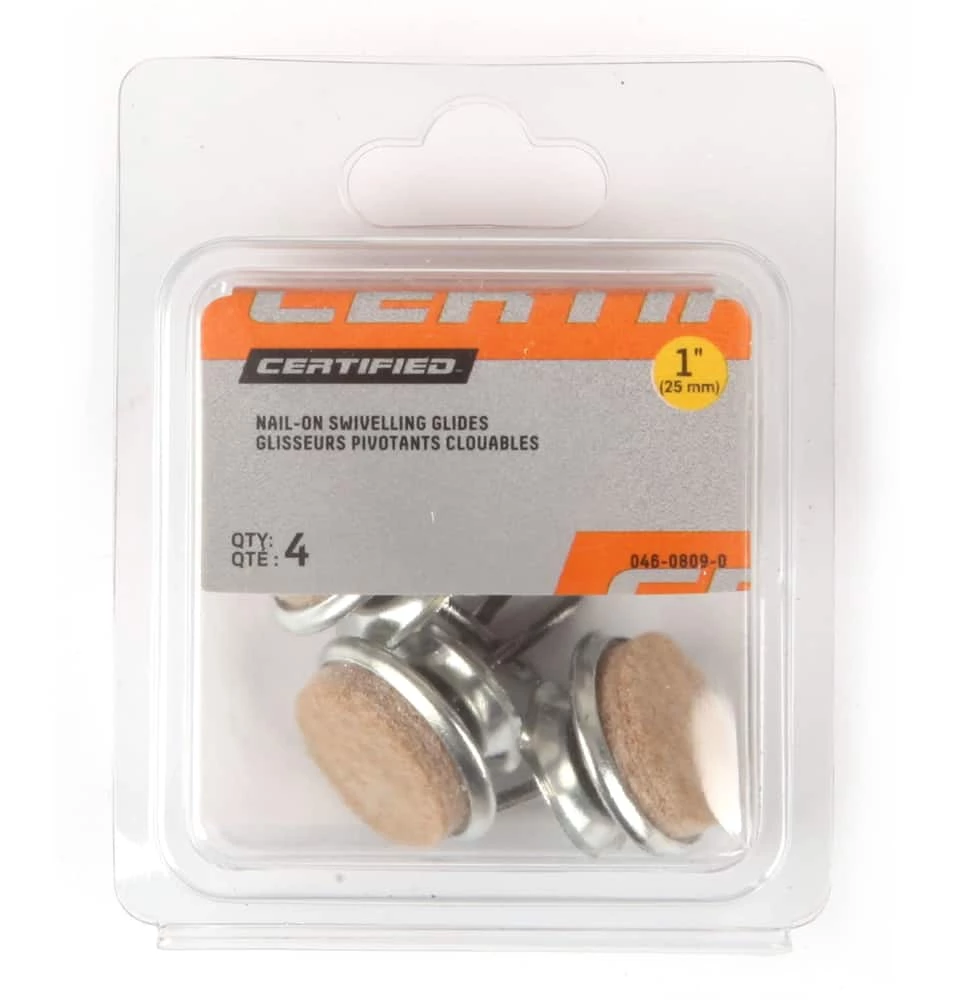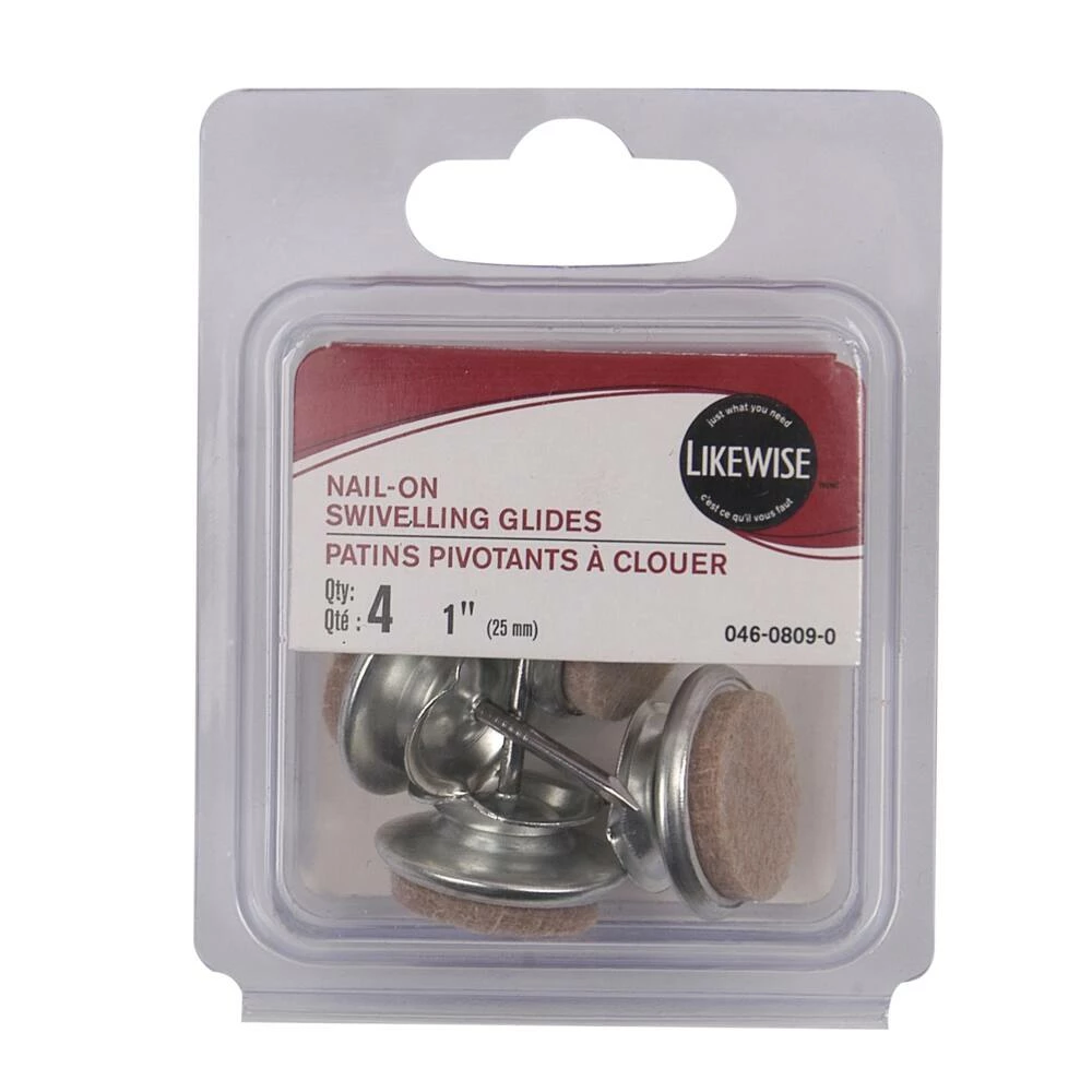 - Nail-On Swivelling Glides for use on straight or slanted wooden legs