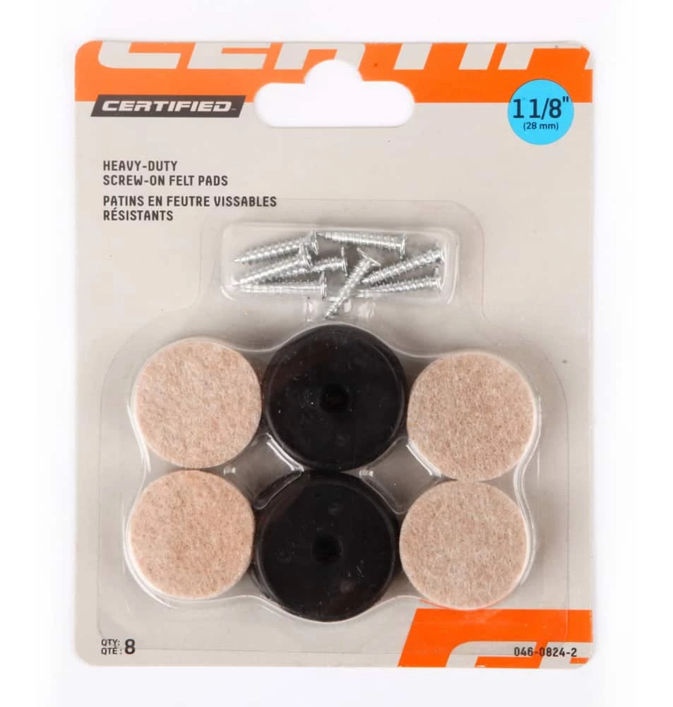 - Round Beige Heavy Duty Screw-On Felt Pads are heavy-duty, self-adhesive, screw-on, felt protectors