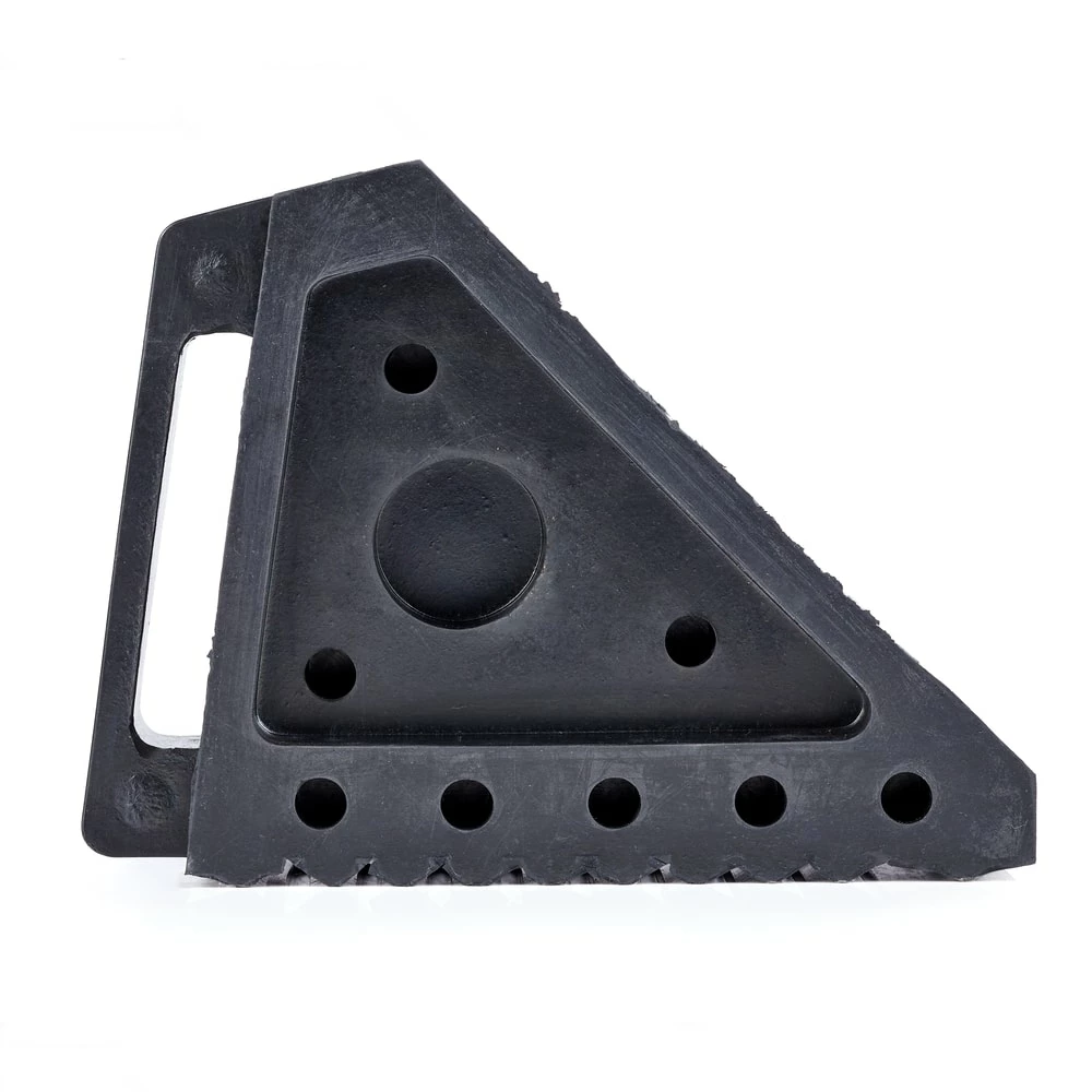 - Certified Rubber Wheel Chock limits the movement of medium-sized RV and utility trailer vehicles, when parked
