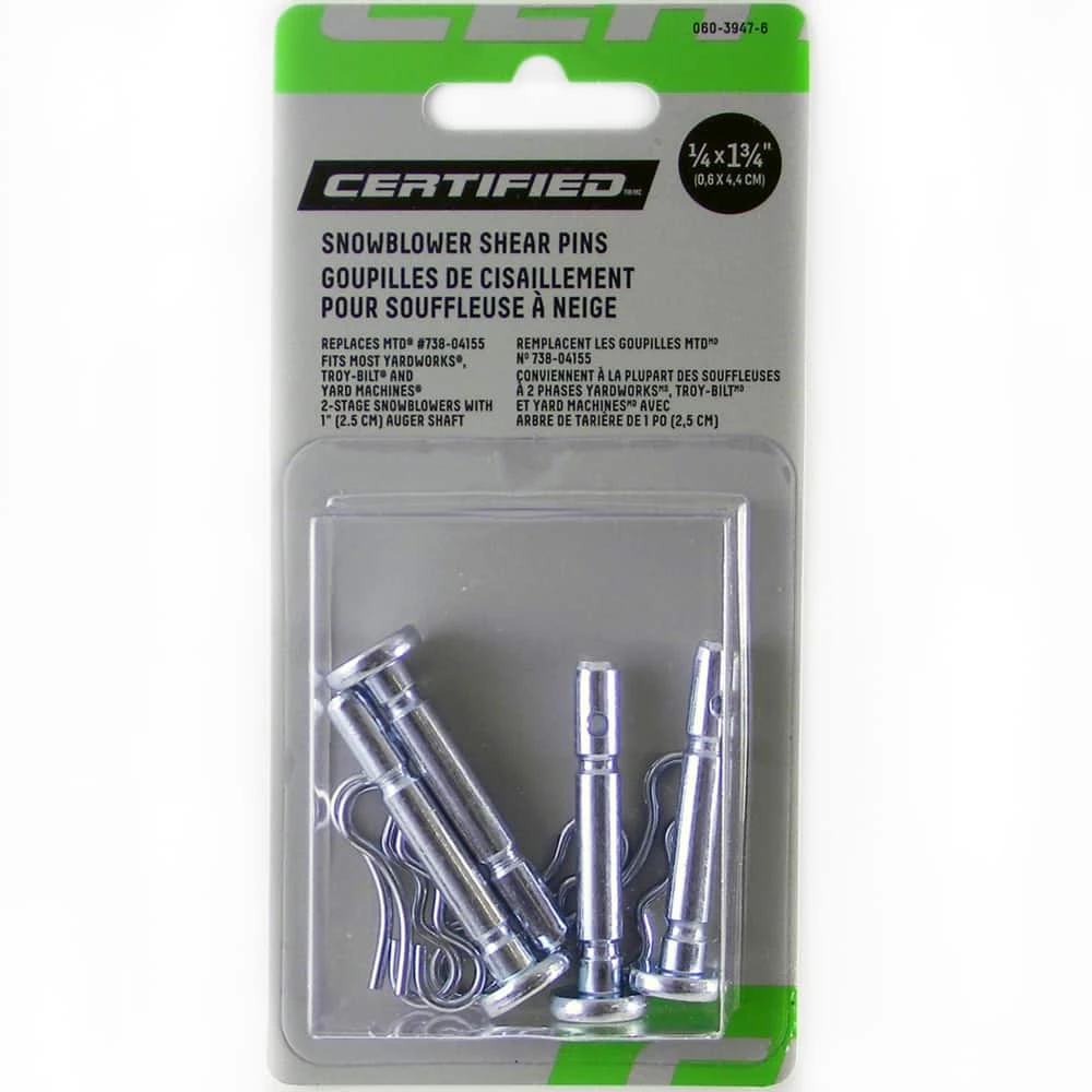 - Includes 4 shear pins and 4 bow-tie cotter pins