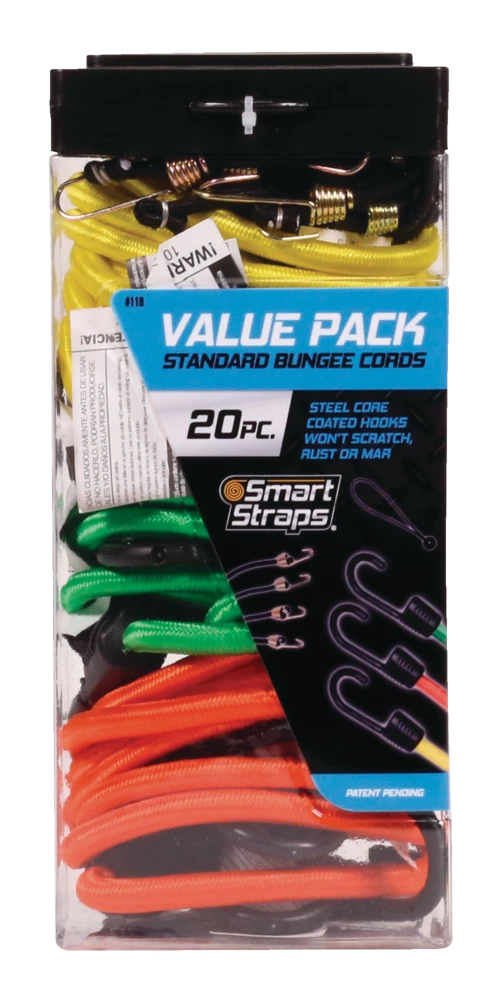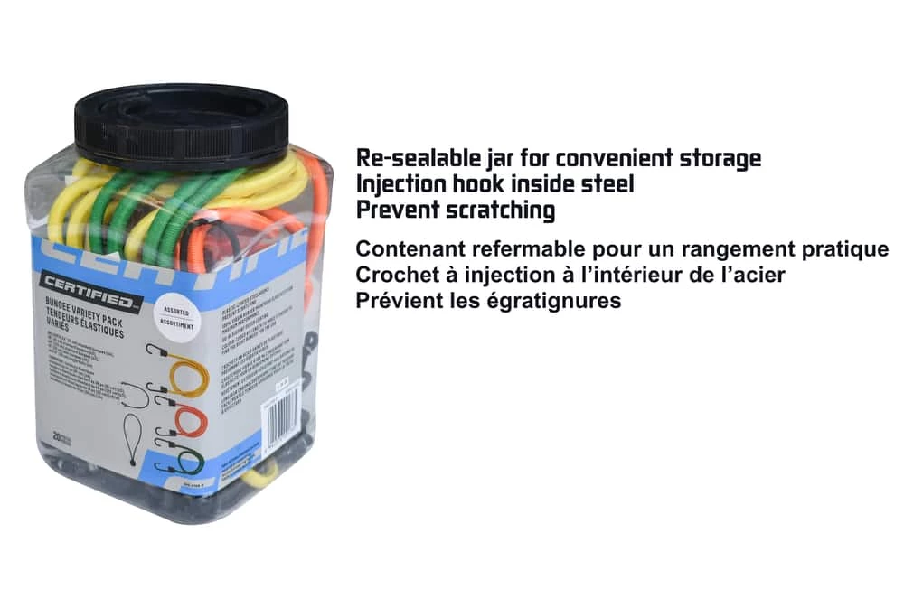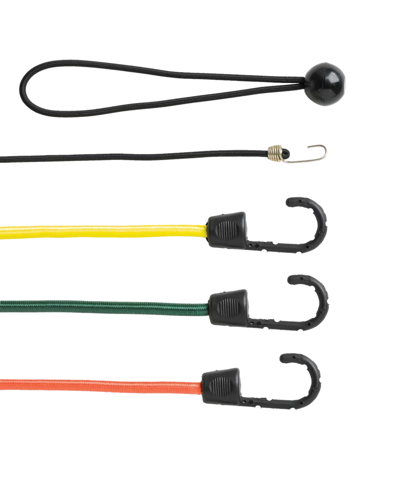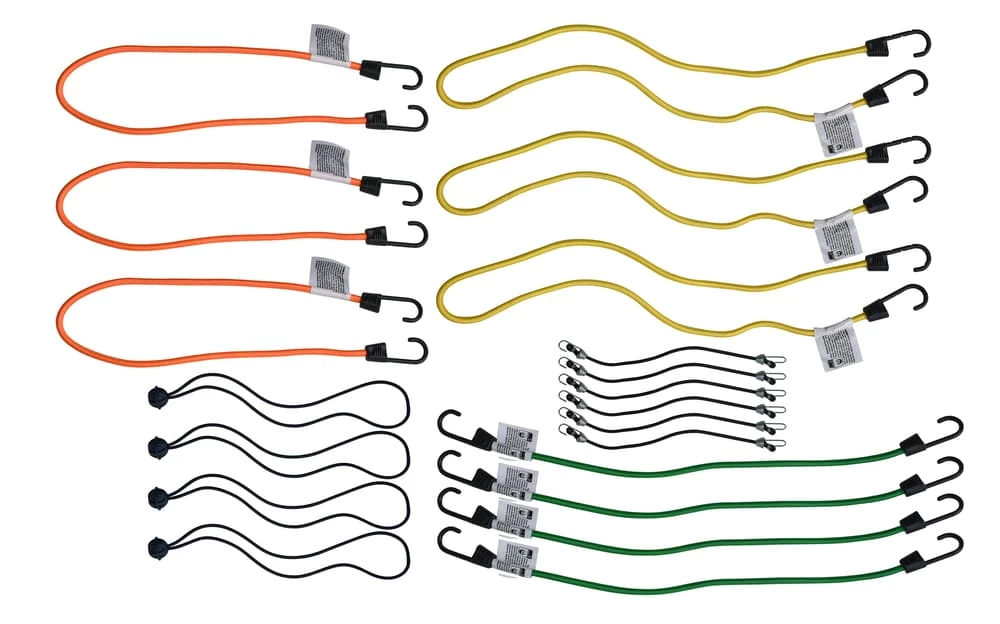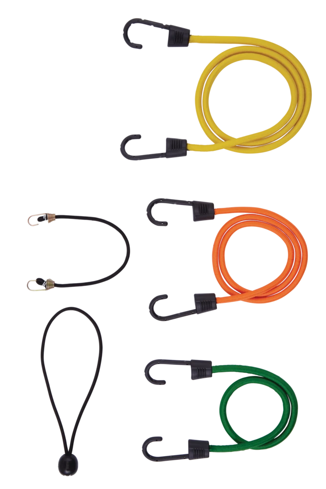 - Assortment includes 4 units 24″ (61 cm), 3 units 36″ (91 cm), 3 units 48″ (122 cm), 6 Mini Bungees, 4 Toggle Balls
