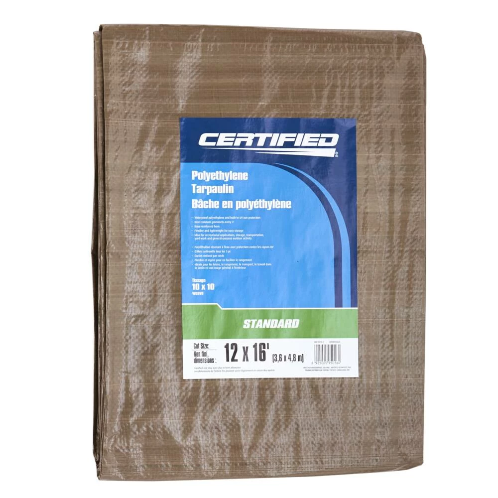- Certified Standard Green and Tan Tarp is ideal for your recreational applications, storage, transportation, yard work and general purpose outdoor activity