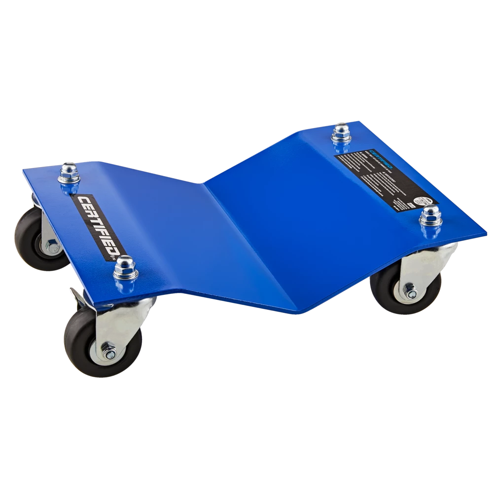 The Certified Wheel Dolly Set allows for easy mobility around any garage or shop. Each set includes two vehicle dollies for up to 2,500-lbs of total mobile support. Features four heavy-duty 3″ ball-bearing swivel casters that provide multi-directional movement.