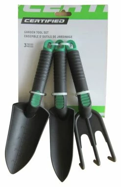 - Certified Plastic Tool Set includes cultivator, trowel and transplanter